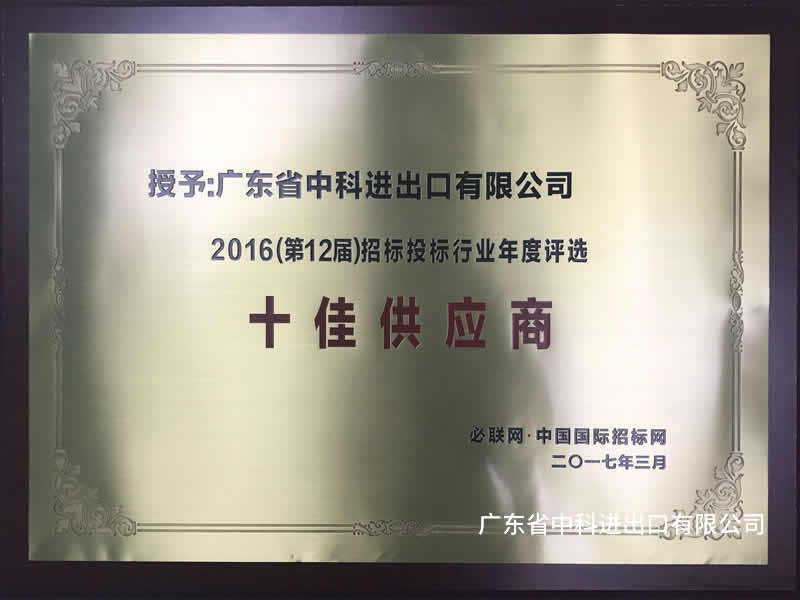 • 2016招標投標行業十佳供應...